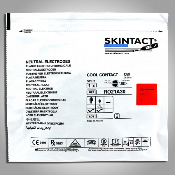 Skintact® RO21A30 corded universal electrosurgical grounding plates are available in quantities of (50) pads per box. Latex & PVC free.